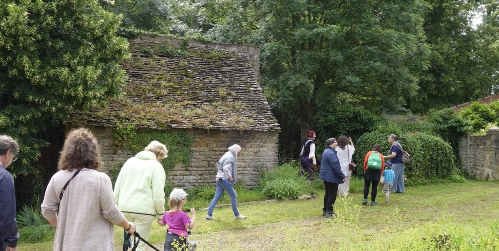 Garance et Gadoue Gaïa invitent les participants à une promenade sensible, au cours de laquelle ils découvrent les plantes locales, l’art de cueillir un instant en 17 syllabes, et l’histoire de Guénolé, jeune garçon qui, dès l’enfance, se passionne pour les arts du fil et pour les fées.